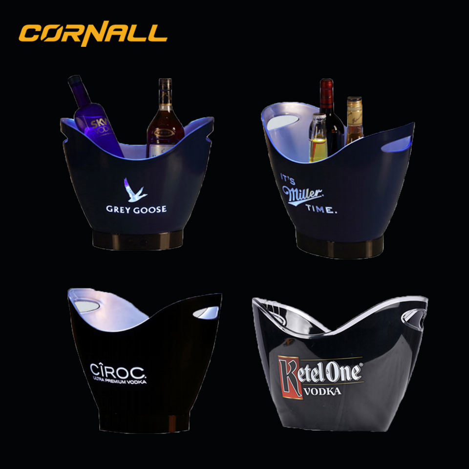 Cubitera LED de Hielo 5 L 7 L 8 L 12 L Gran Capacidad Enfriador de Vino LED Impermeable con Colores Cambiantes Cubo Retro para Champaña Vino Cerveza Hielo