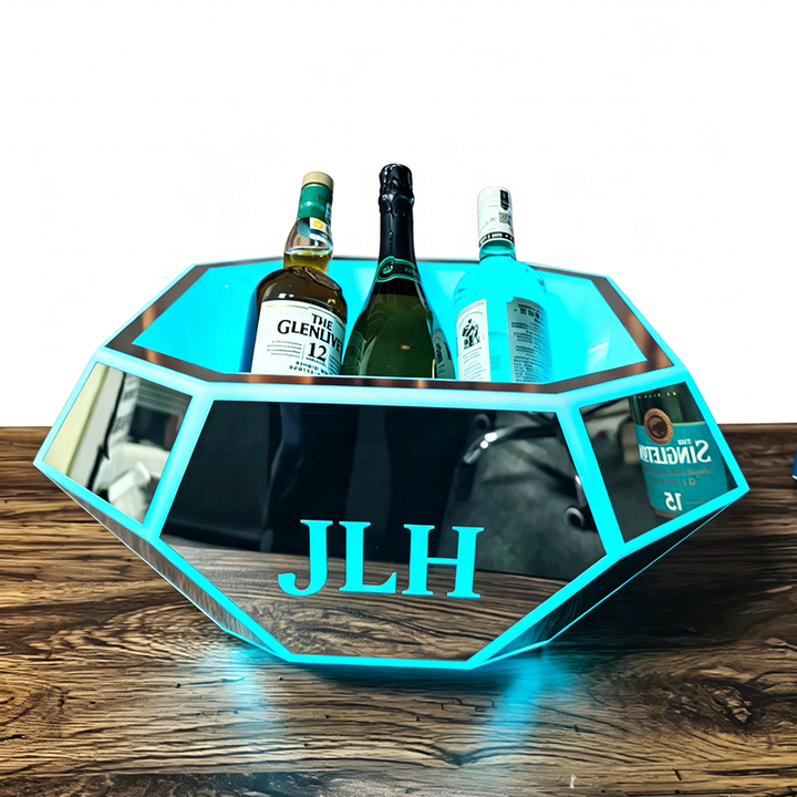Cubo de Hielo LED de Plástico para Bar, con Capacidad para 6-12 Botellas de Champán, Vino o Cerveza, con Luz de Colores Cambiantes
