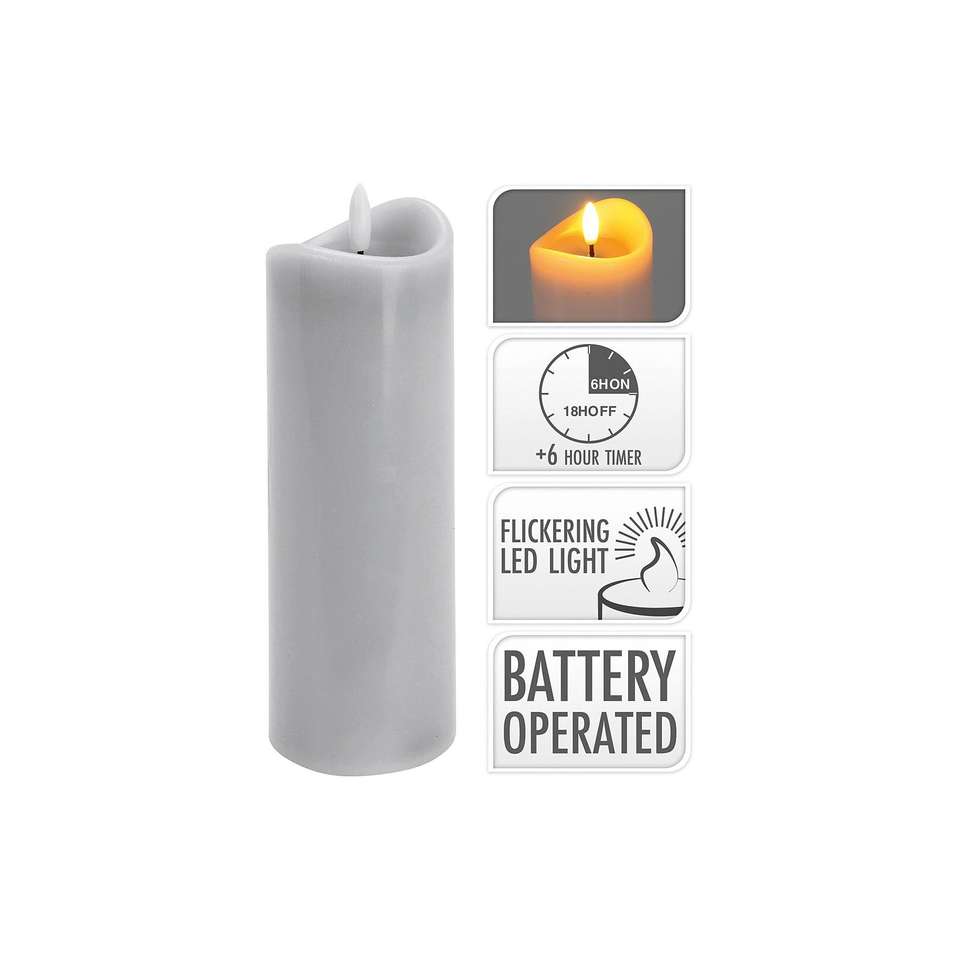 LED Kerze Wachs mit Gelee-Effekt Grau mit Timer 20x7 cm