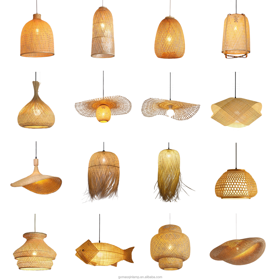 Lámpara LED colgante de isla de cocina Lámpara de bambú para interiores con pantallas y cubiertas Lustre Suspendu Cuisine