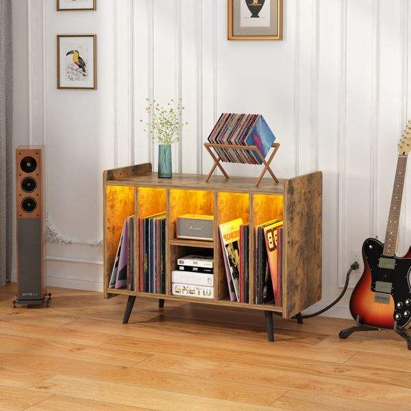 LED Light Bedro Turntable Stand Storage Vinyl Record Storage Cabinet Living Room Cabinets Record Player Stand Album Cabinet