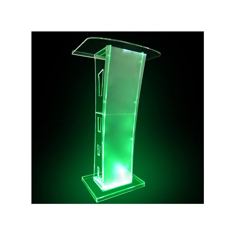 Luz LED de cristal plexiglás acrílico Conferencia transparente púlpito de acrílico claro podio