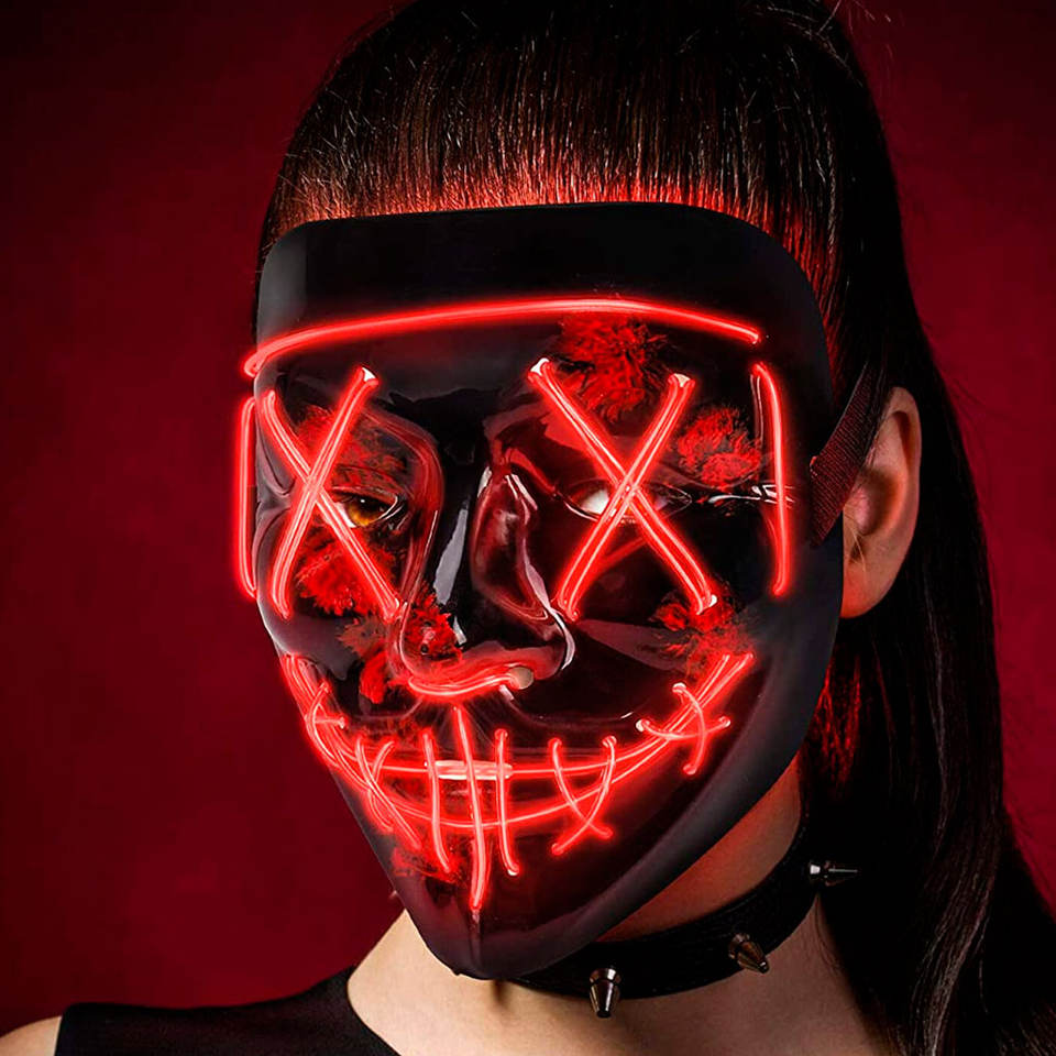 Máscara LED para Halloween, Disfraz de Purge con Diseño de Fantasma de Neón, Máscara de Plástico para Fiesta de Disfraces