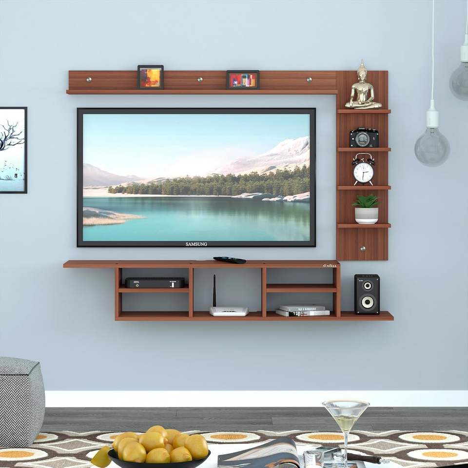 Mueble de TV con Luz LED, Mueble de TV para Montar en la Pared, Mueble de TV para Sala de Estar, Soporte para Decodificador - Marrón (D.I.Y - Hazlo Tú Mismo)