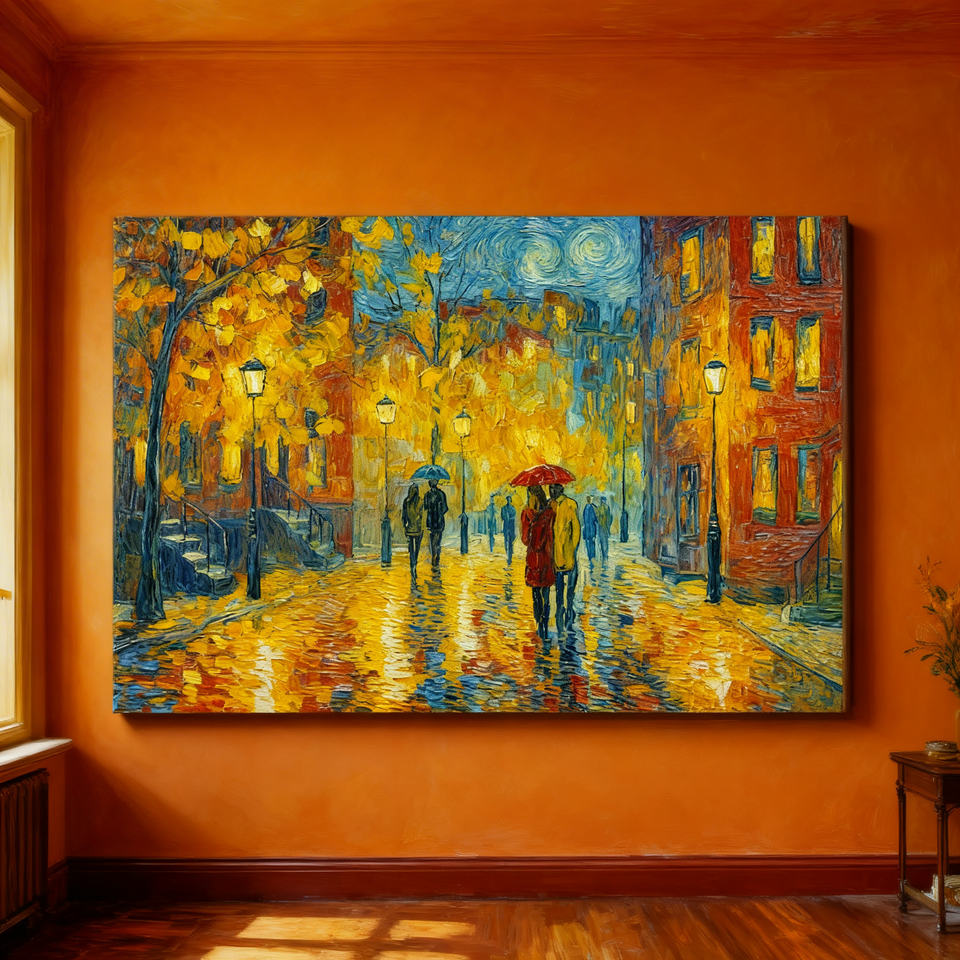 Lámpara LED con diseño de la noche estrellada de Van Gogh, lienzo decorativo de pared en varios paneles para la decoración del hogar, para sala de estar y dormitorio