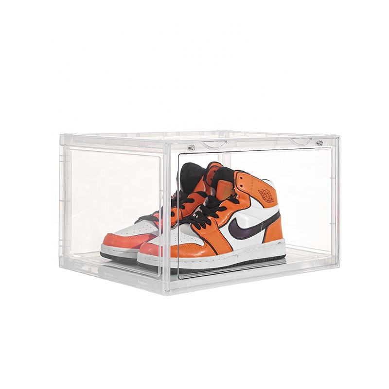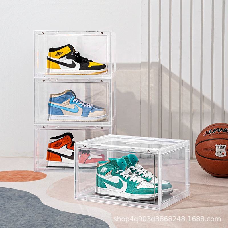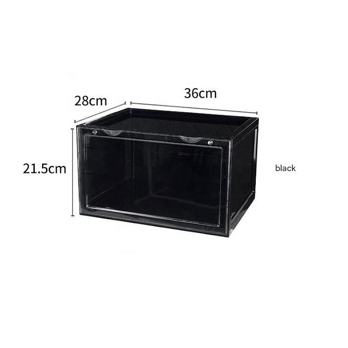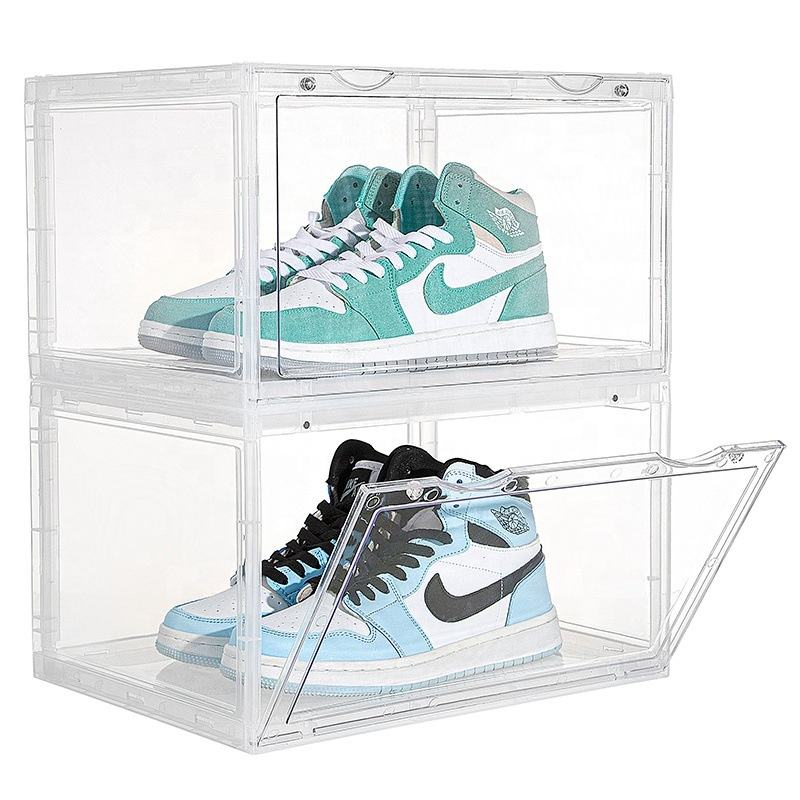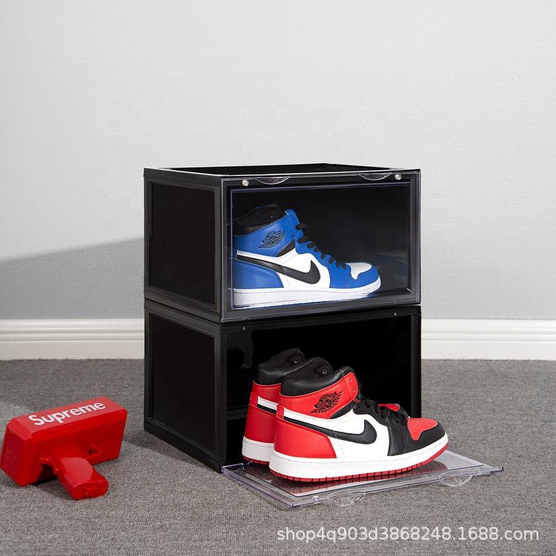 Caja de zapatos emisora de luz LED AJ almacenamiento a prueba de polvo Zapatero apertura lateral caja de almacenamiento transparente de plástico grueso magnético