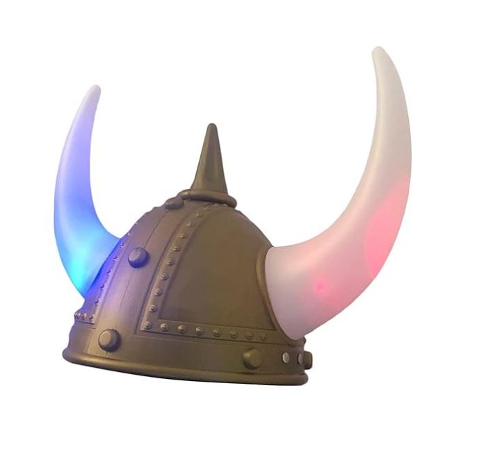 Casco vikingo con luz LED con trenzas de cuernos para disfraz de guerreros medievales accesorio de disfraces sombrero para fiesta temática