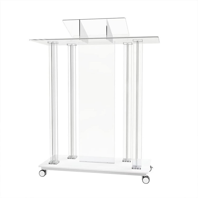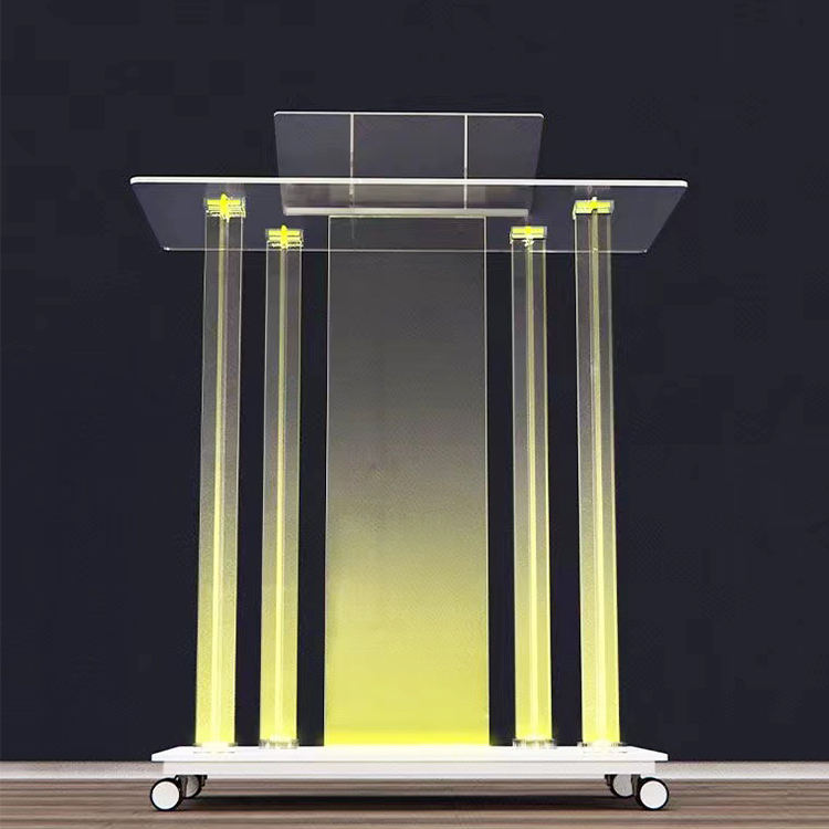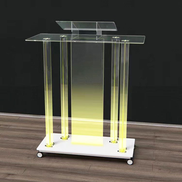 Iluminación LED Iglesia vidrio acrílico transparente podio soporte tribuna púlpitos desmontables atril muebles modernos diseños para la venta