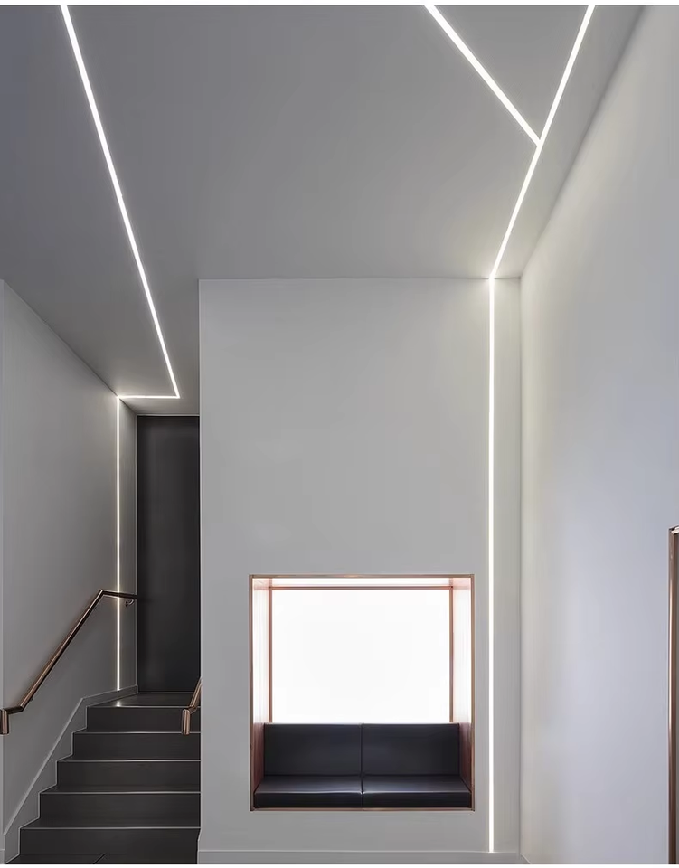 Luz Lineal LED Serie 6000, Canal de Aleación de Aluminio Anodizado, Instalación Superficial/Empotrada, Perfil Oculto, Luz de 2700K