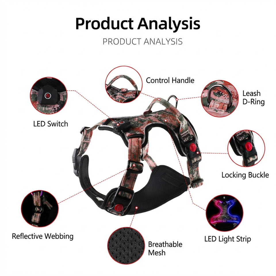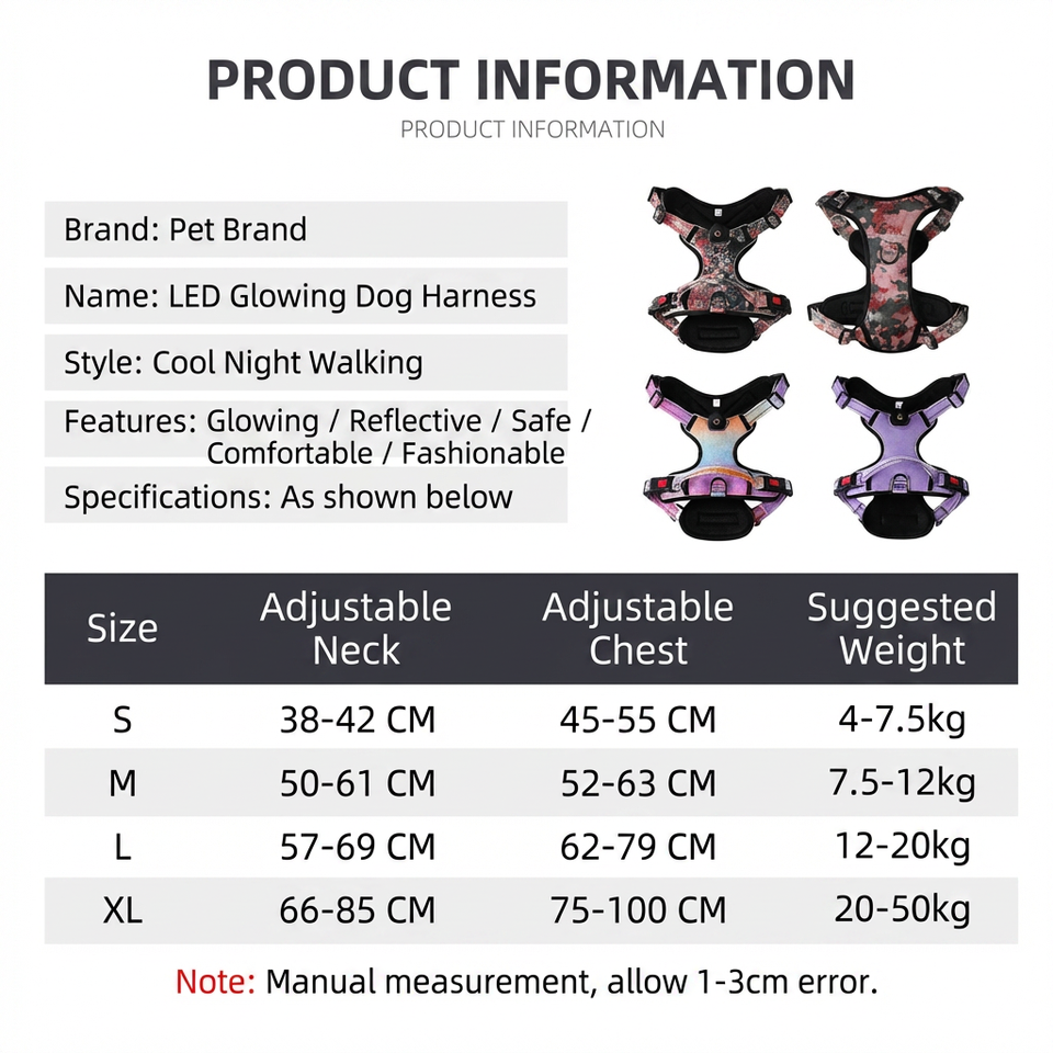 Arnés Luminoso LED para Perros, Chaleco Reflectante de Seguridad Nocturna, Recargable por USB, Correa de Pecho Ajustable Antitirones para Perros Grandes