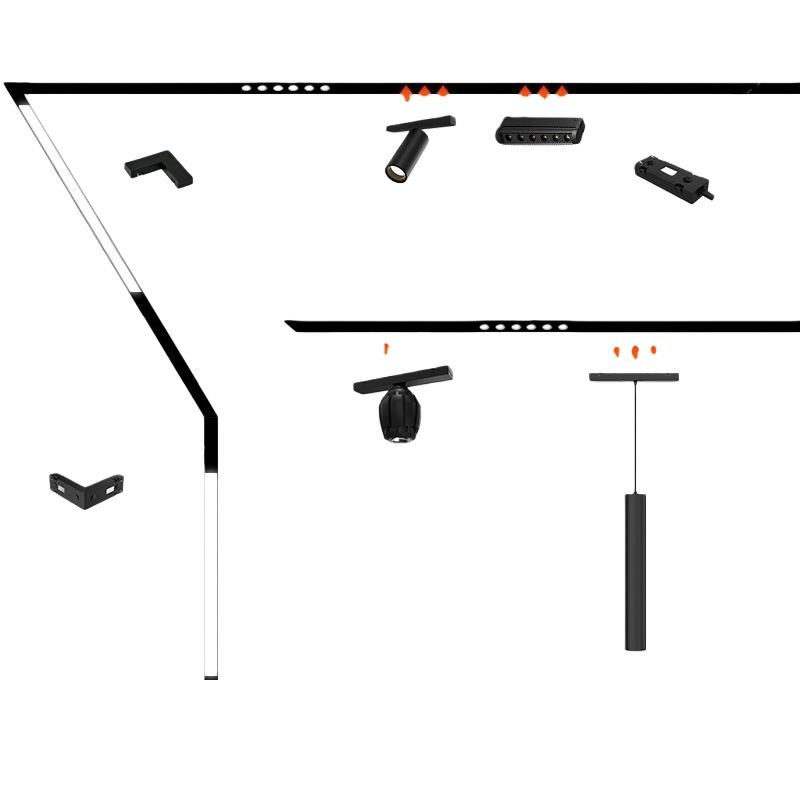 Lámpara de Riel Magnética LED, Riel de Alimentación Magnético 2010, 48V, Foco COB, Proyector Ajustable, Rejilla Empotrada, Superficie Negra