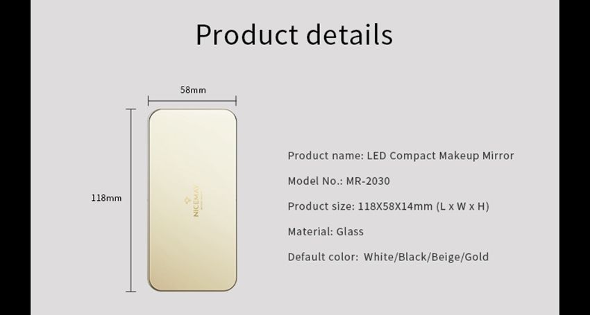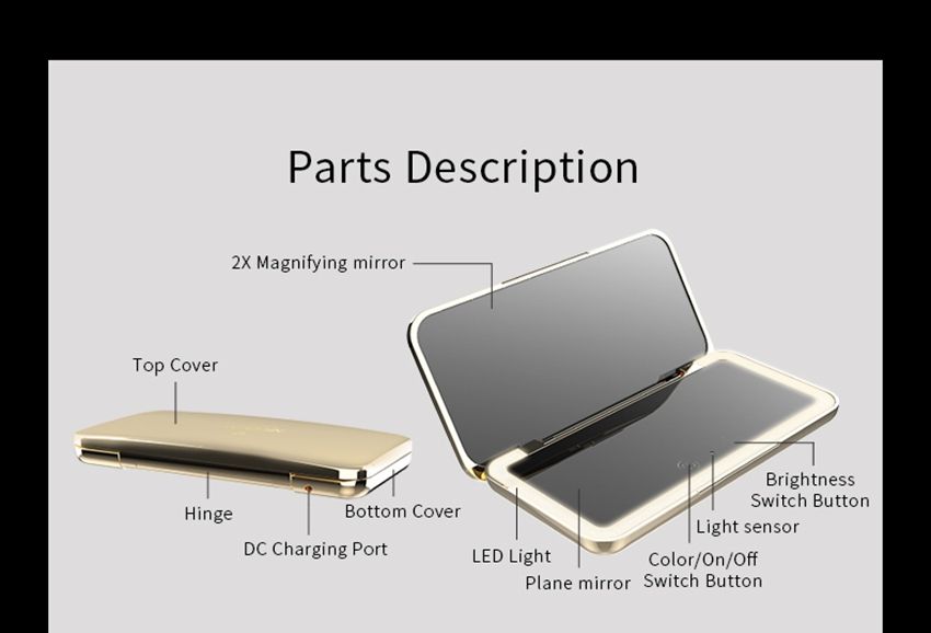 Nombre:Espejo de mano plegable pequeño con luz LED para maquillaje y cosméticos