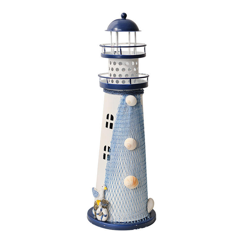 Faro Metálico LED de 30 cm con Luz de Siete Colores, Decoración para el Hogar, Estilo Mediterráneo, Adorno para Sala de Estar