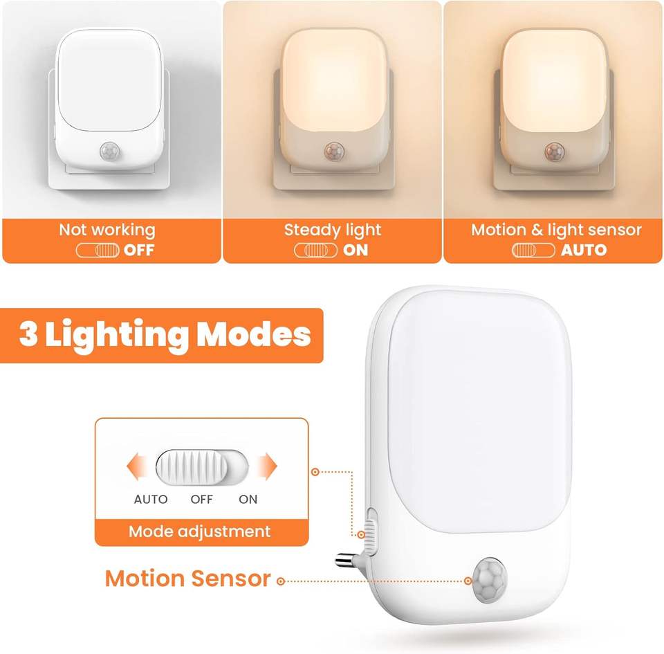 Luz Nocturna LED Moderna con Sensor de Movimiento de Encendido/Apagado Automático, Luz Blanca Cálida Suave para Dormitorio