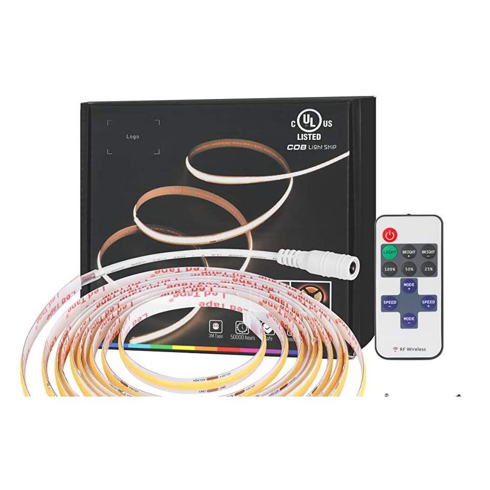 Tira de Luces LED COB con Sensor de Movimiento, Luz Cálida de 3000K, Lámpara de Noche con Control Remoto, Sin Puntos de Luz