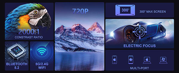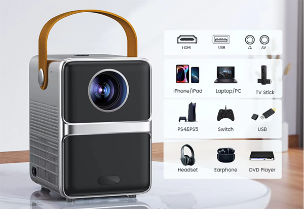 Proyector LED Nativo 720P Portátil con WiFi 5G, Proyección Inalámbrica, Proyector de Video Inteligente Ajustable, Cine en Casa, Películas, TV 3D