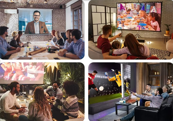 Cine en casa, negocios al aire libre, educación.Uso