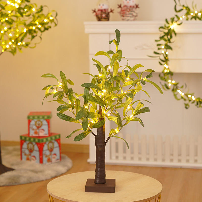 Luces LED para Árbol de Hojas de Olivo, Brillo Cálido, Decoración Navideña para el Hogar, Iluminación Interior para Paisajes FS-SD088