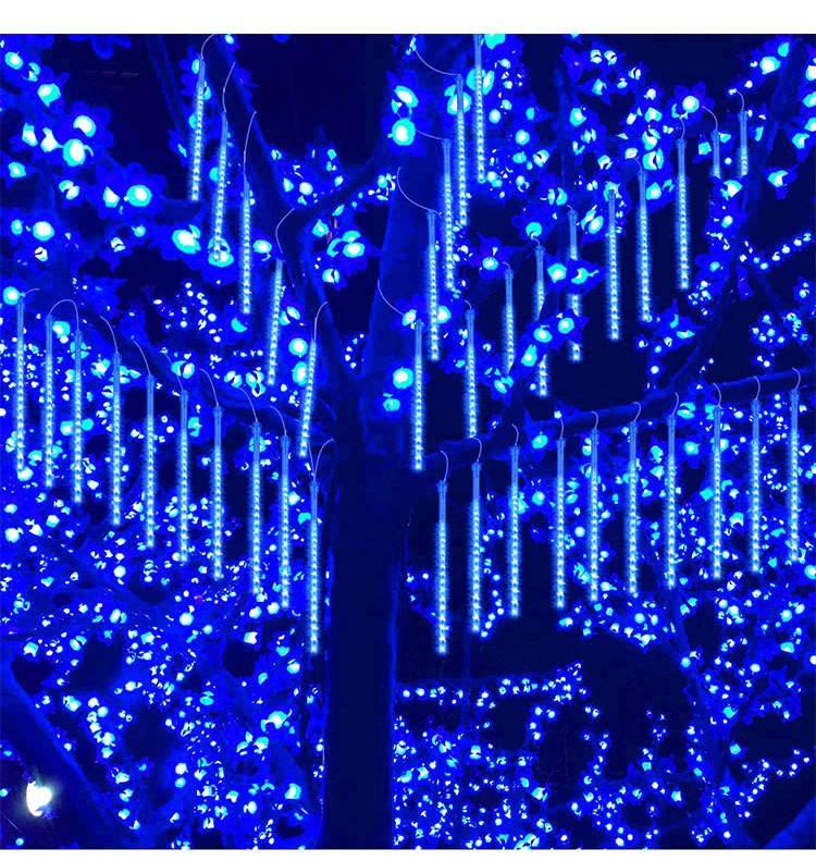 Tiras de luces LED solares para exterior, efecto lluvia de meteoros, luces decorativas para colgar en árboles de Navidad en patios