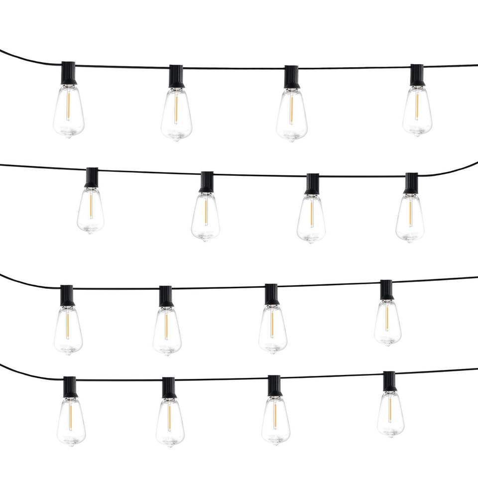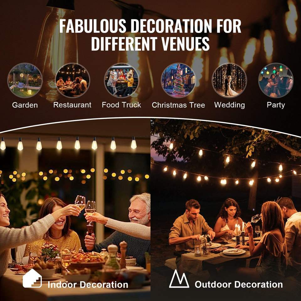 Guirnalda de Luces LED para Exteriores de 200 Pies, 2700K, Regulable, con 100 Bombillas ST38 Resistentes a Impactos, Base de Enchufe E12, Impermeable