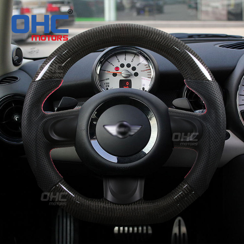 Volante de fibra de carbono con agujeros para coche, volante de rendimiento LED compatible con BMW MINI Cooper R55 R56 R57 R58 R59