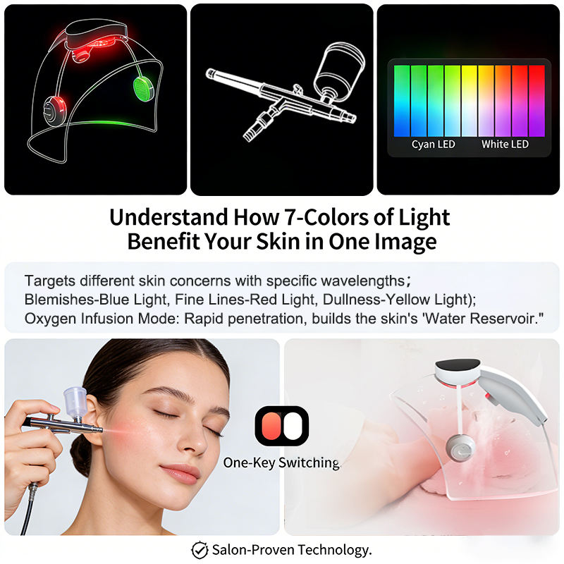 Máscara de Oxígeno con Fototerapia LED, Dispositivo Portátil de Estimulación de Colágeno para Reducción de Arrugas y Cicatrices, Tratamiento de Belleza en Casa