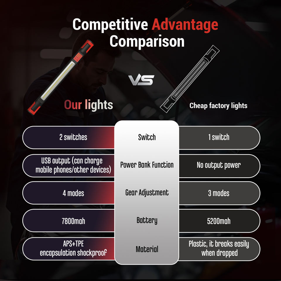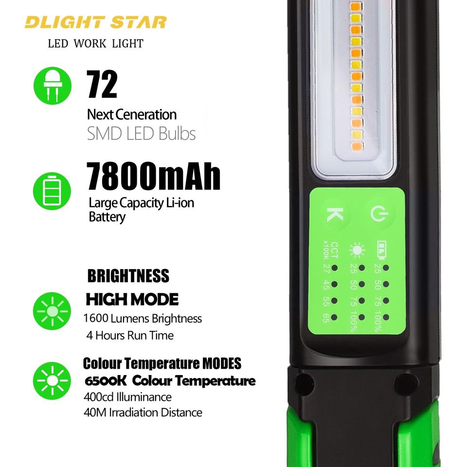 Lámpara de Trabajo LED Portátil Magnética para Debajo del Capó, Recargable por USB C, Resistente al Agua IP65, Regulable, 1600 Lúmenes