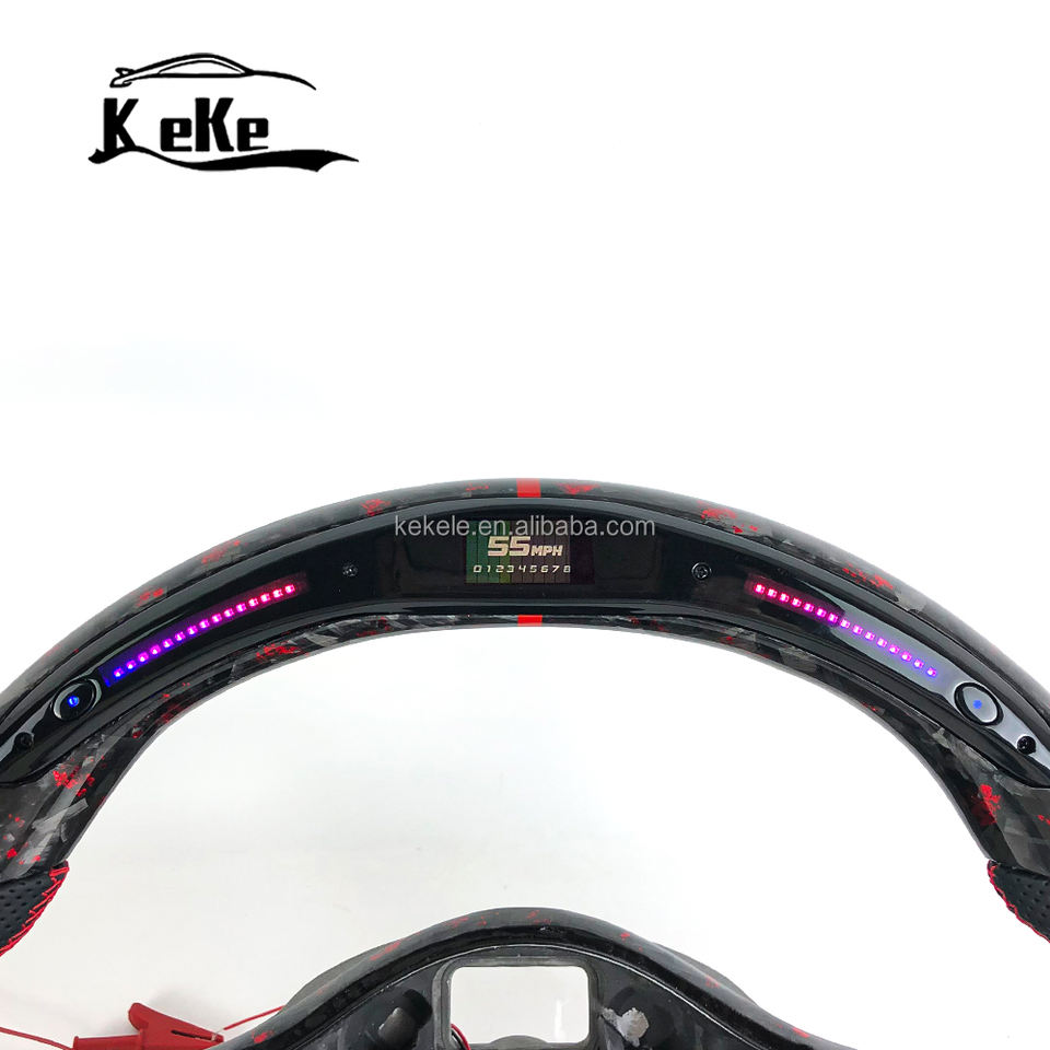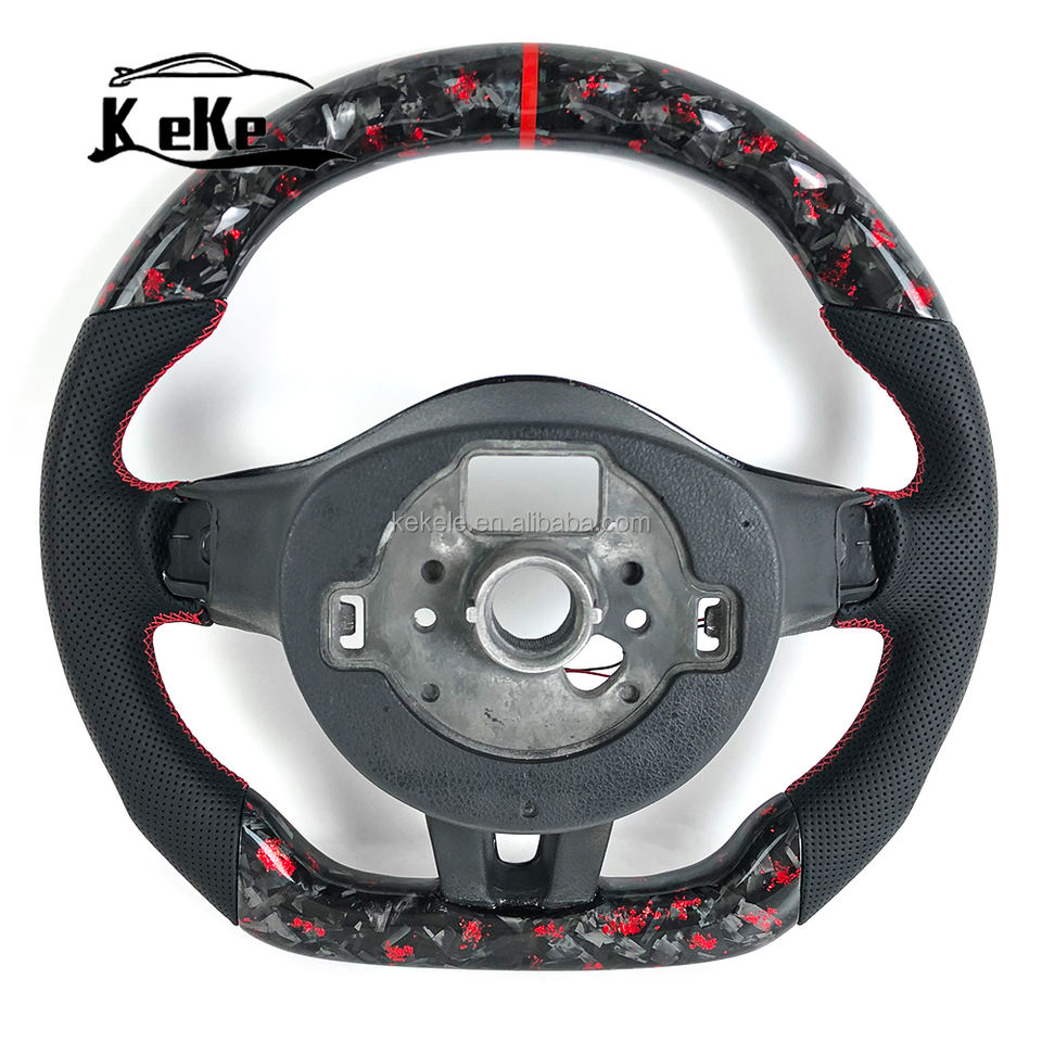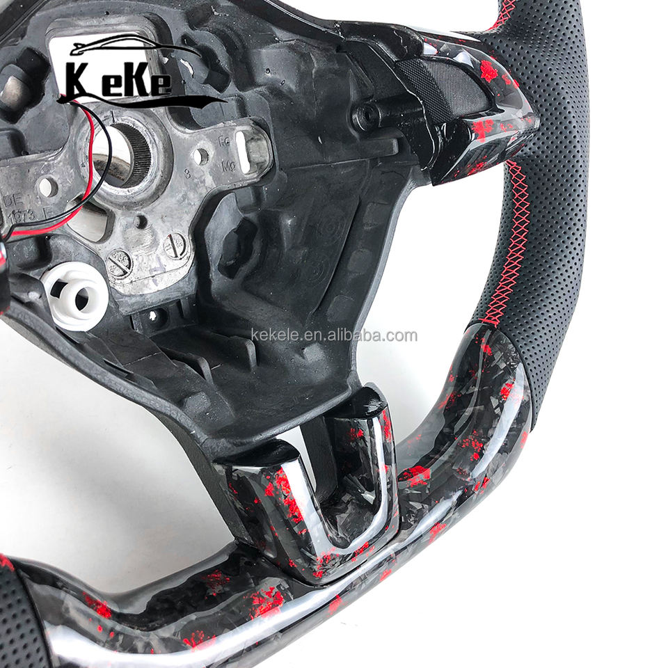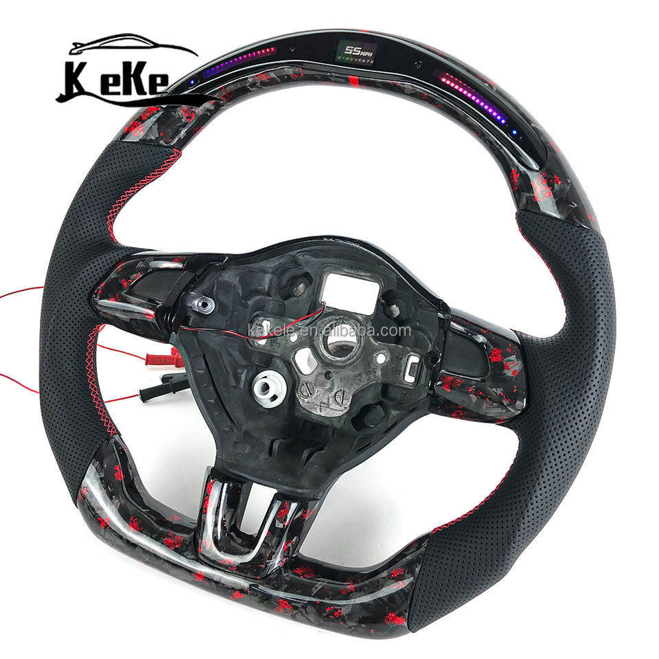 Volante Deportivo de Fibra de Carbono Forjado con LED Rojo para Volkswagen Polo Golf Mk6 Mk7 GTI Passat B7 B8, Admite Personalización
