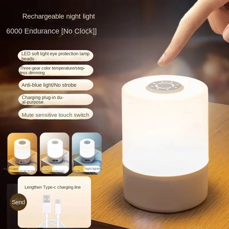Luz nocturna LED con control remoto con reloj Pantalla de nivel de batería Temperatura de tres colores USB recargable 1200mA Lámpara de noche