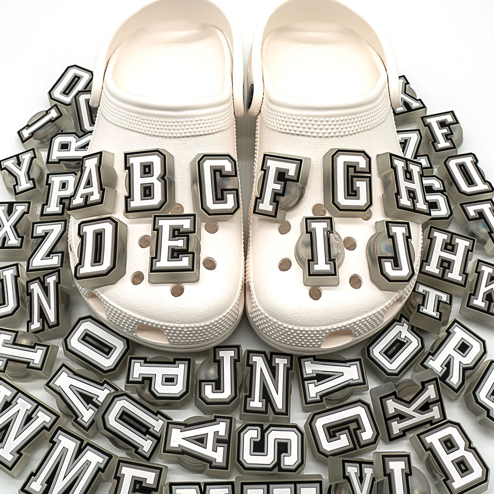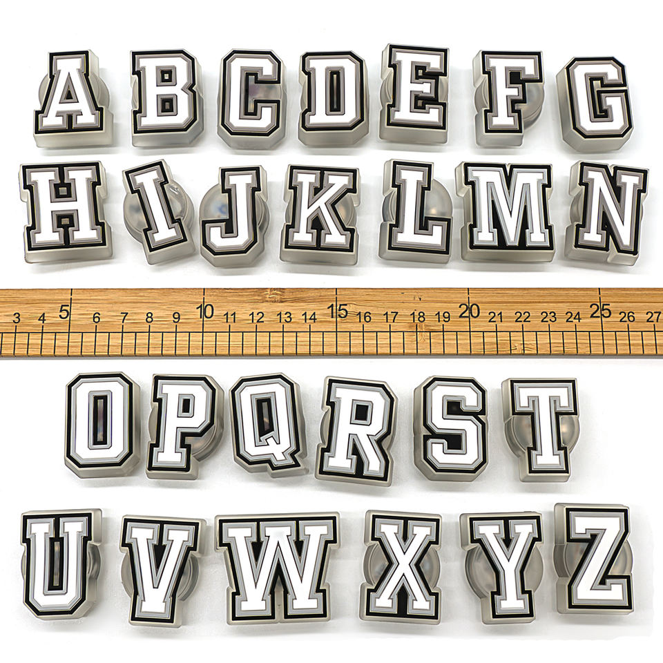 Charm LED Brillante para Zapatos, Letras Blancas y Negras, PVC, para Zuecos Deportivos, Zapatillas, Charm LED Personalizado para Zapatos, Decoración para Zapatos de Profesor, Charm al por Mayor