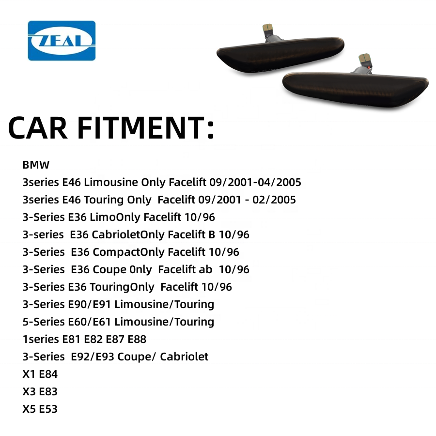 Luces LED de posición lateral para BMW 3series E46 Limousine/E46 Touring 2001- 2005/E36 Limo 96/X1 E84 X3 E83 X5 E53/E90/E91 Limousine