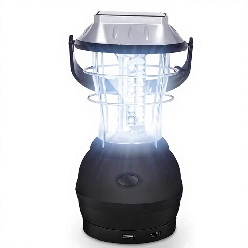 Linterna LED Solar para Camping con Manivela, Recargable, Impermeable, Luz de Emergencia para Senderismo y Excursiones