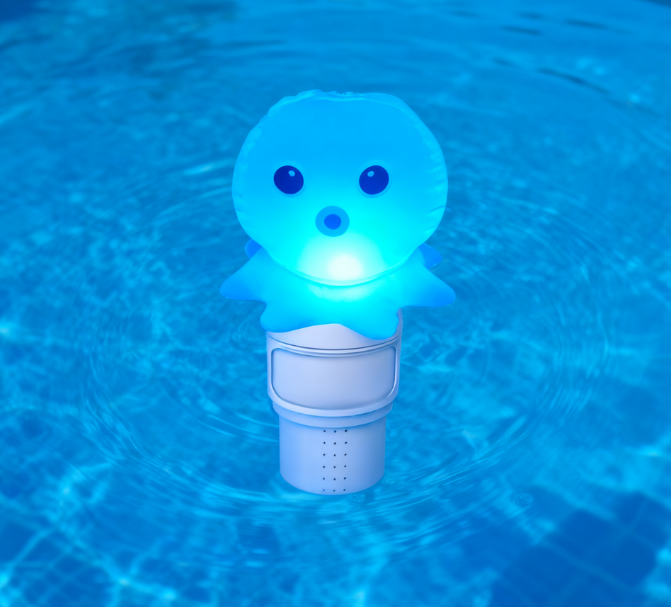 LED Solar pulpo piscina flotador de cloro dispensador químico Color lámpara flotante extraíble taza flotante dispensador de medicamentos