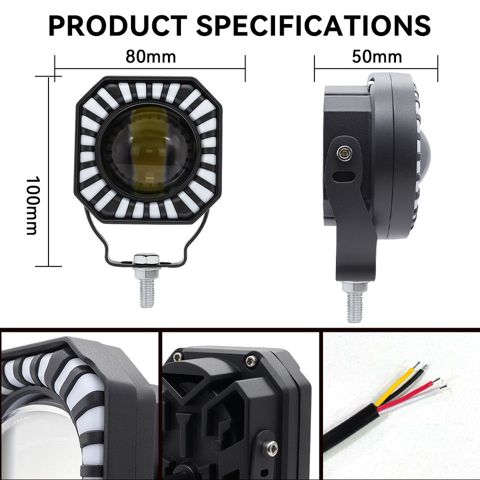 Focos LED Cuadrados para Motocicleta, Faro Delantero de 40W, Doble Color, Luces Antiniebla para Autos, Motos, Vehículos Todoterreno, MO-213, 1 Año de Garantía