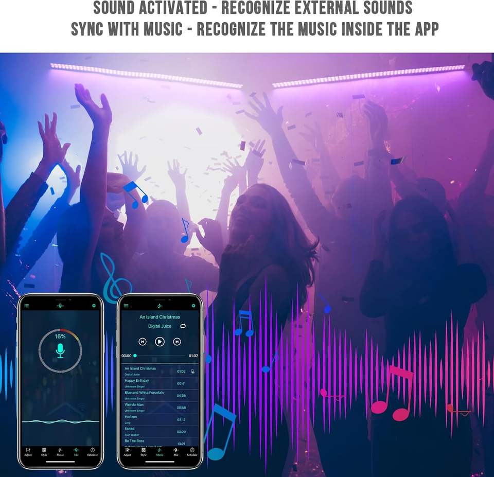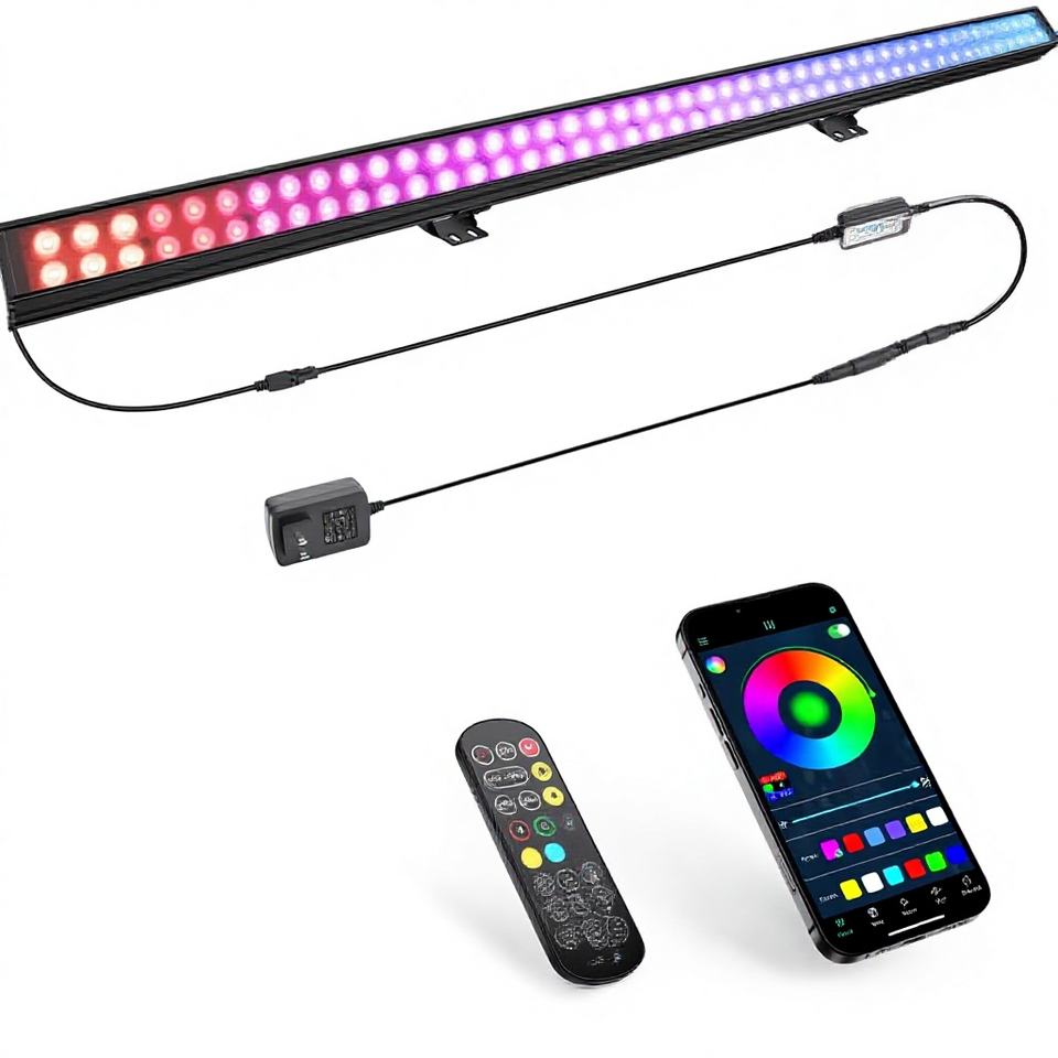 Barra de Luces LED para Escenario, 60W, Doble Fila, 108 LEDs, Control Remoto/App, Multicolor, Clasificación IP33, para Uso en Clubes