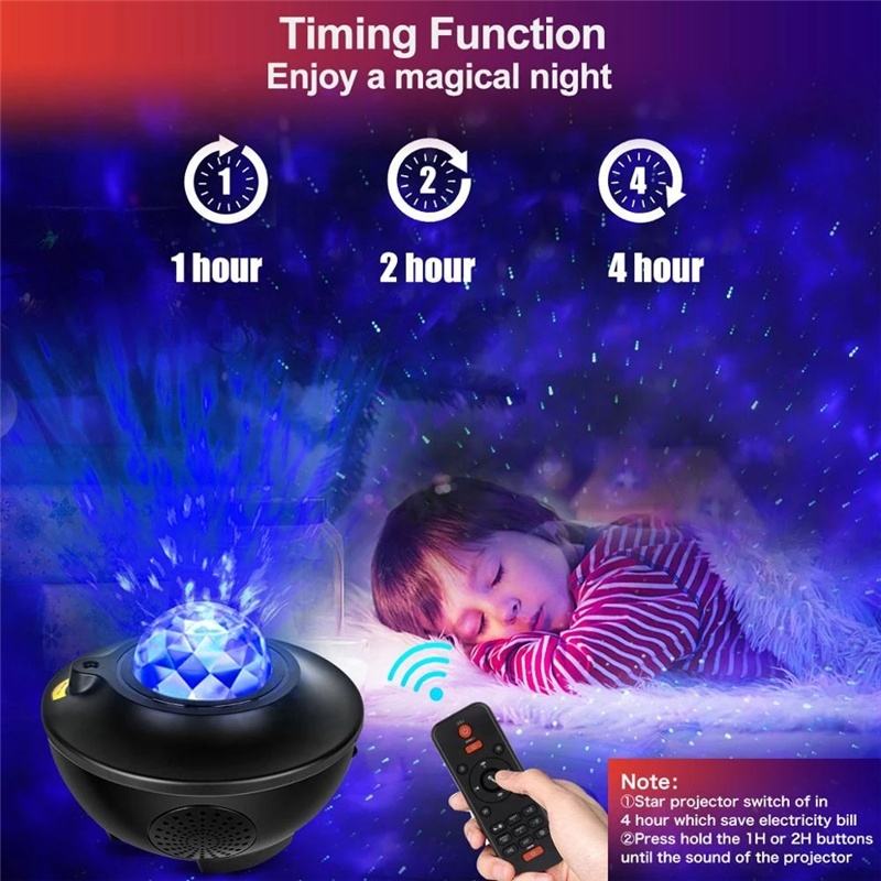 Proyector de Luz Nocturna LED con Diseño de Cielo Estrellado, Proyector de Estrellas Galácticas, Lámpara Nocturna con Olas del Océano, con Música y Altavoz Inalámbrico para Niños
