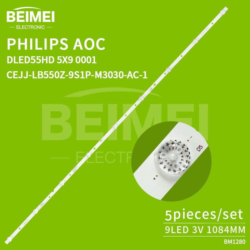 Tira de LED para Retroiluminación de TV LED CEJJ-LB550Z-9S1P-M3030-AC-1 para Philips 55PUF7065/T3 55PUF7294/T3 AOC55I3 DLED55HD 5X9 0001