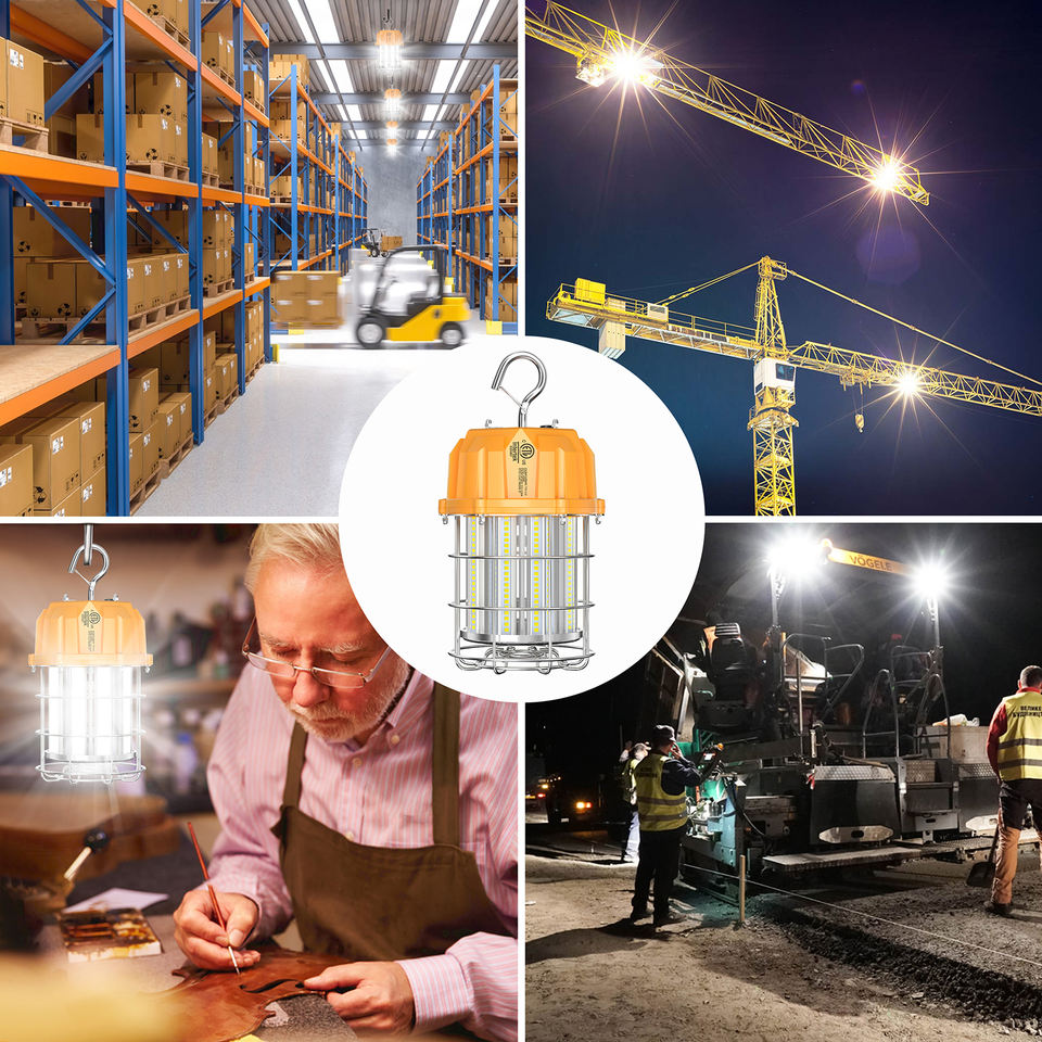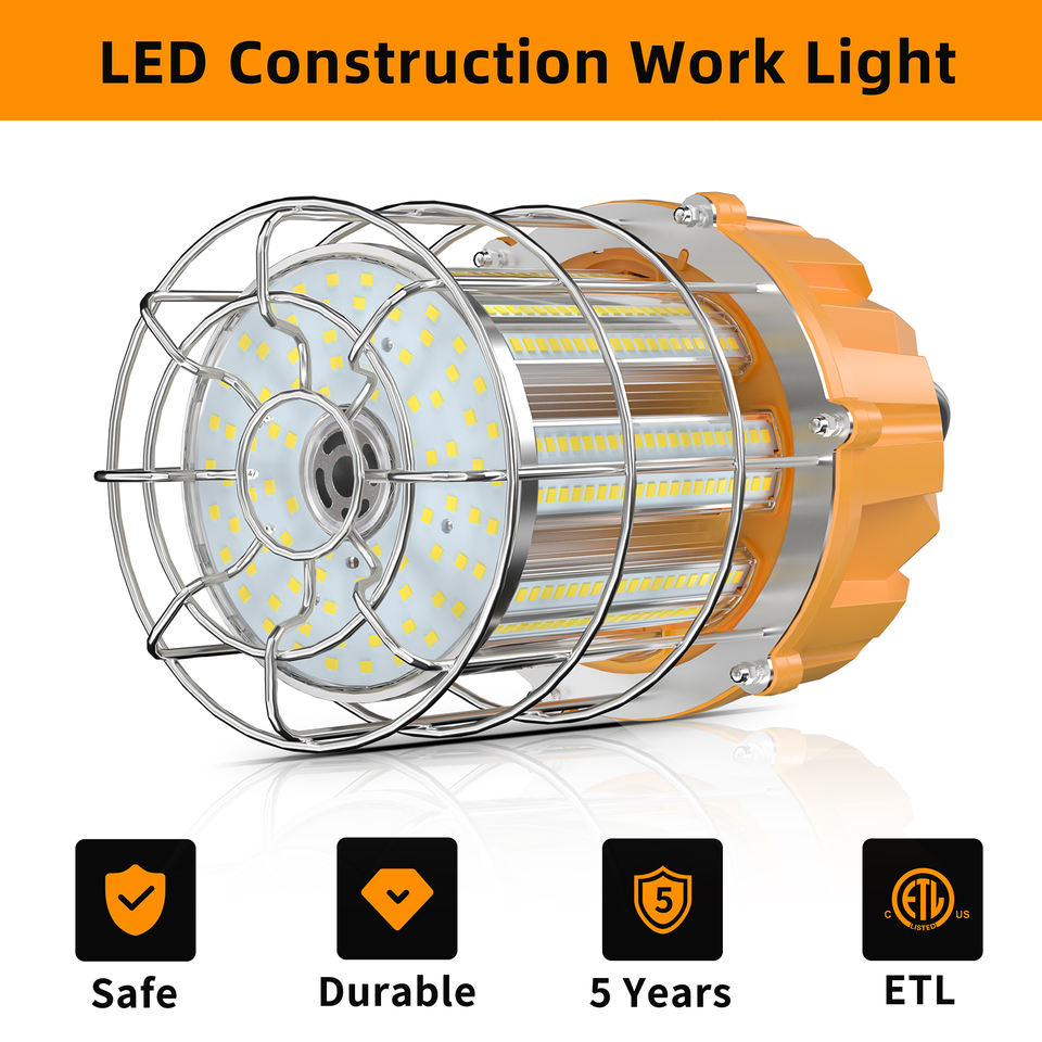 Lámpara de Trabajo LED Temporal de 100W 5000K, Luces de Construcción para Exteriores, Iluminación para Obras, Cable de 10 pies, Resistente al Polvo y al Agua, Iluminación Colgante
