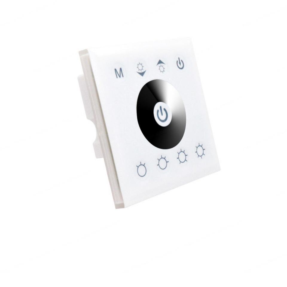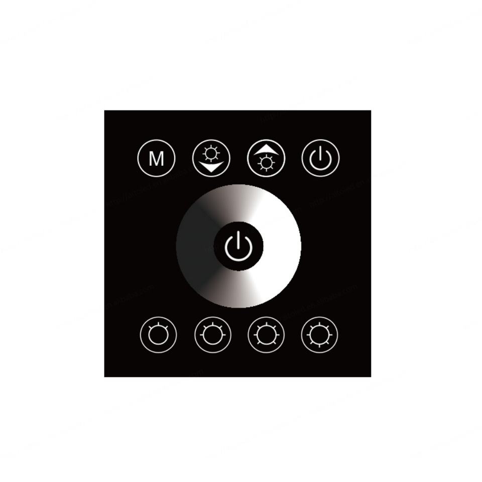Panel Táctil LED de Pared, Controlador de Intensidad de un Solo Color, 86x86, 12V-24V, 6A, 2 Canales, Ánodo Común, Carga Máxima de 288W