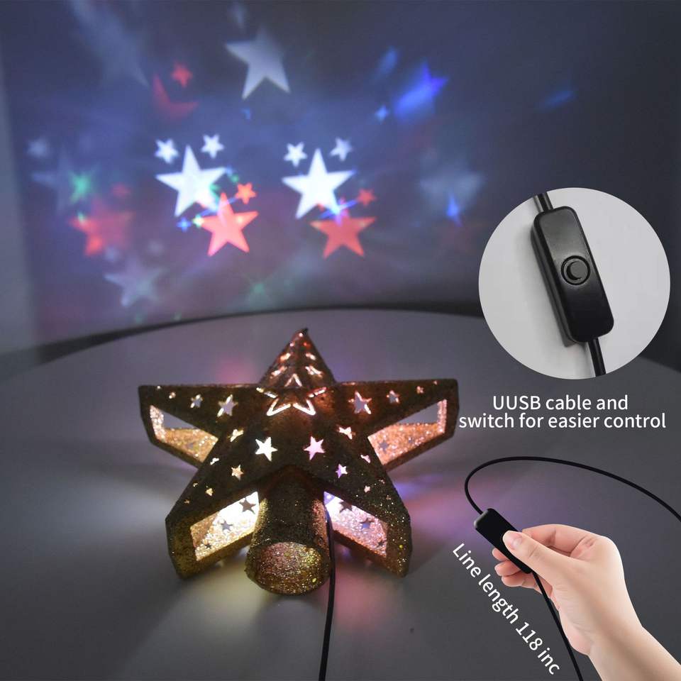 Luces Decorativas LED para la Copa del Árbol, Proyección de Estrella de Cinco Puntas, Adorno Giratorio para la Copa del Árbol de Navidad