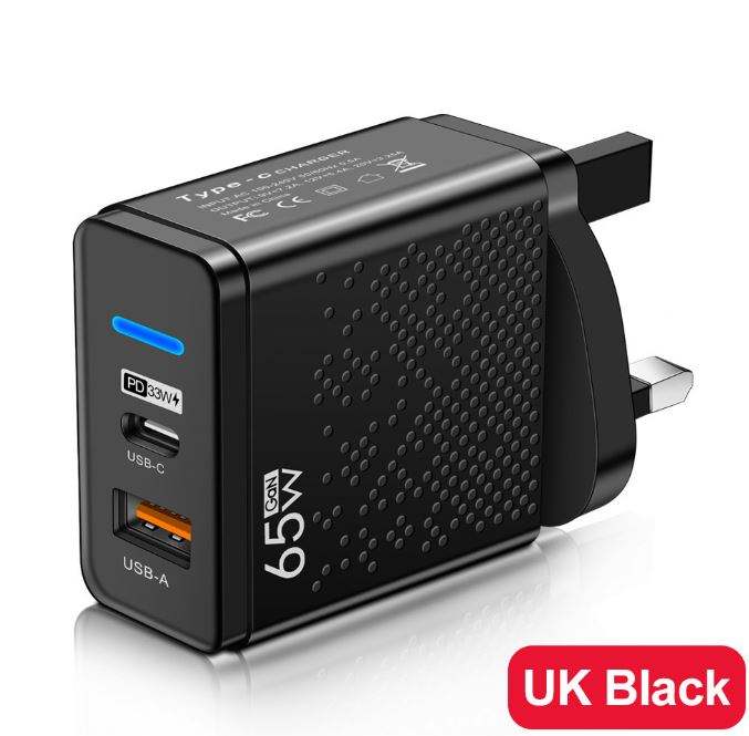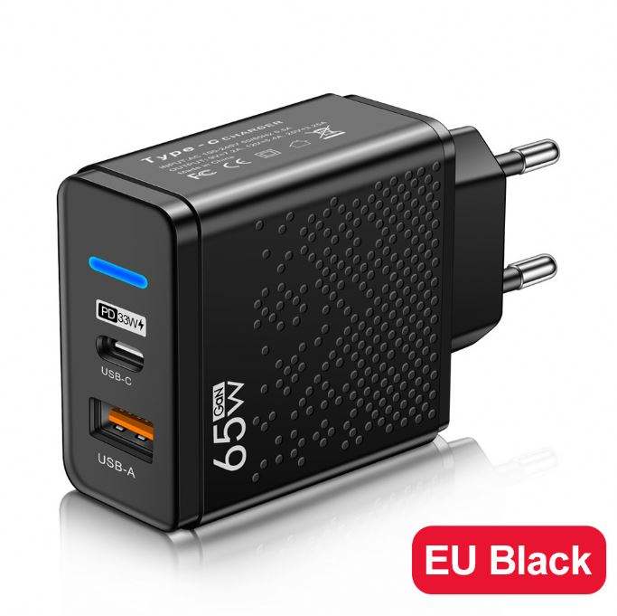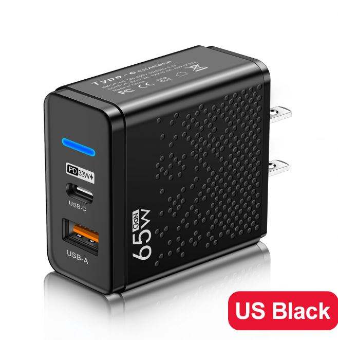 Cargador de Teléfono Móvil LED USB+PD Tipo-C, Cargador de Carga Rápida Multi-Puerto para Viajes en EE. UU., Reino Unido y la UE