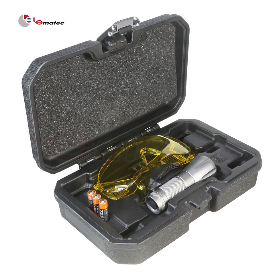 Kits de Linterna LED UV para Detección de Fugas con Resistencia al Agua IPX6, Linterna UV con Batería 3AAA y Gafas Protectoras