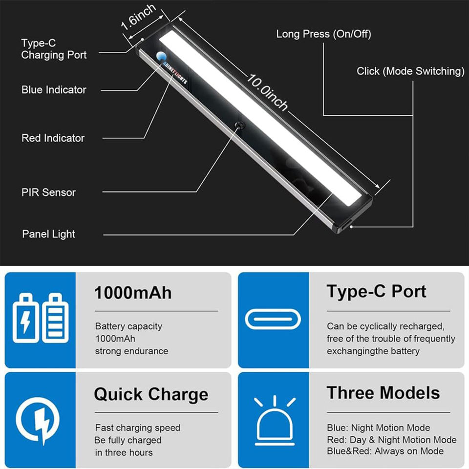 Luces LED Modernas para Gabinetes Interiores con Sensor de Movimiento, Regulables, Recargables, Inalámbricas, Adhesivas, para Escaleras, Armarios y Gabinetes