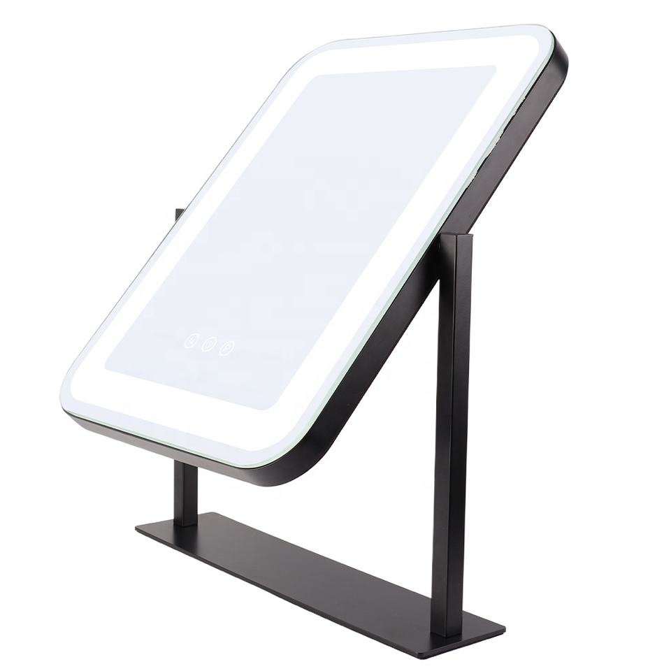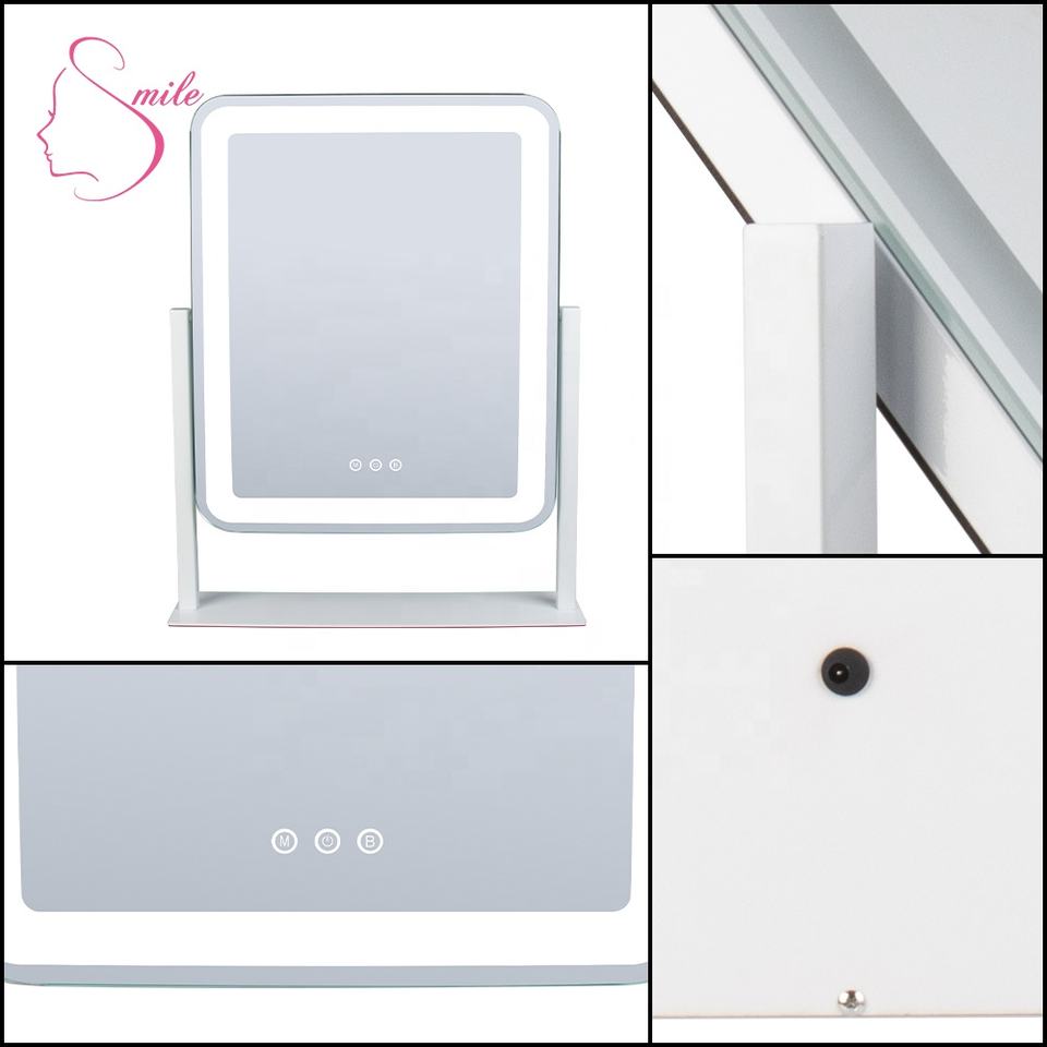 Espejo de tocador LED Rotación de 360 grados Estilo circular de un solo lado Lupa Diseño de escritorio compacto Cosméticos Caja de maquillaje