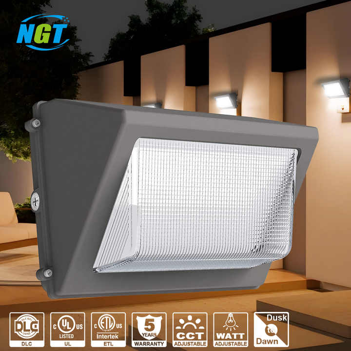 Lámpara de Pared LED de 120W con Fotocélula de Encendido/Apagado Automático y Lente de Vidrio, Reflector de Seguridad para Exteriores, Comercial e Industrial