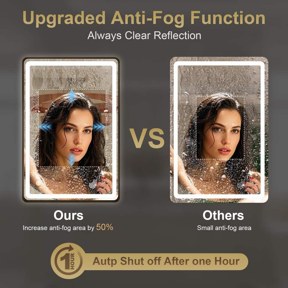 Espejo de baño LED, marco negro, luz frontal y trasera, ajuste continuo, antivaho, memoria, esquinas redondeadas Espejo de tocador LED
