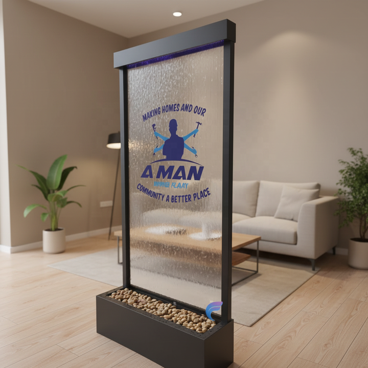 Cortina de agua gráfica con luces LED, fuente de cascada artificial para interiores, cascada de metal pintada de blanco
