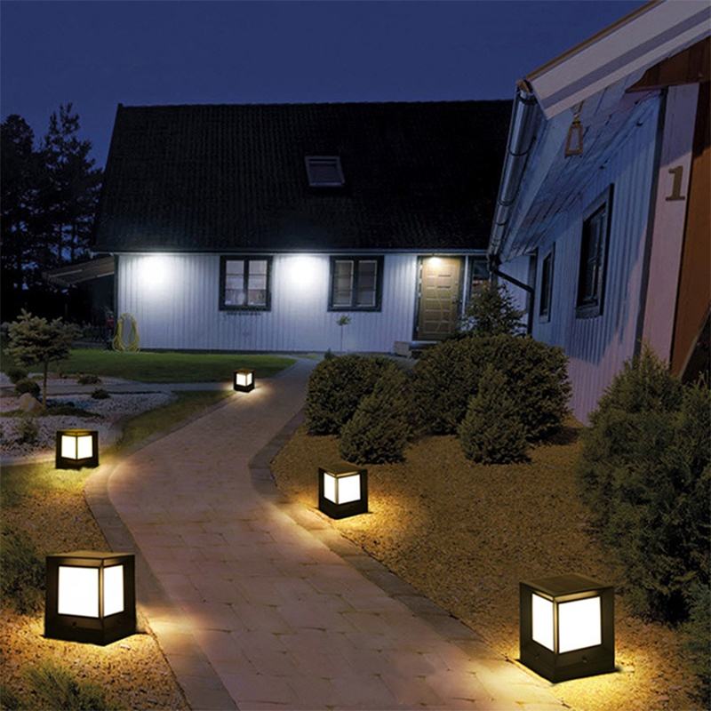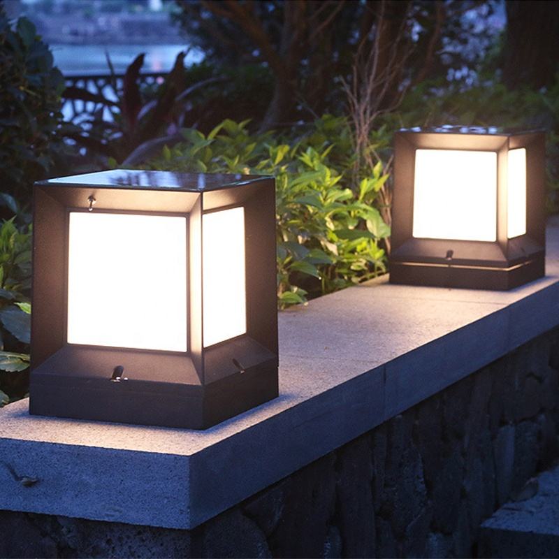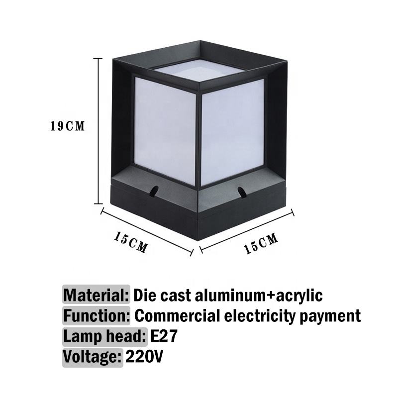 LED moderno diseño minimalista IP65 impermeable negro al aire libre columna luz ultra brillante acrílico pantalla aluminio fundido a presión