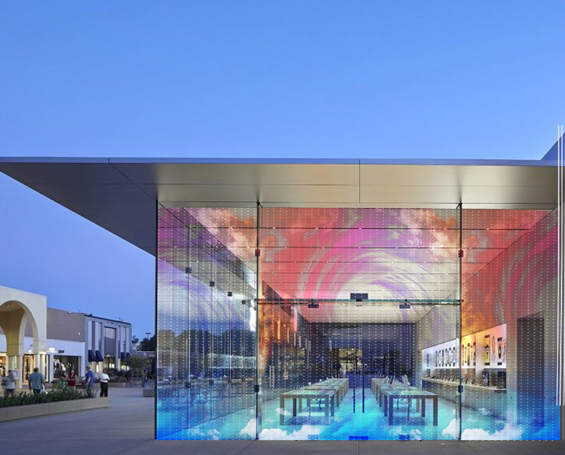 Pantalla de película transparente LED flexible para interiores- (P5.1/P6/P8/P10/P16/P20) ideal para Centro Comercial