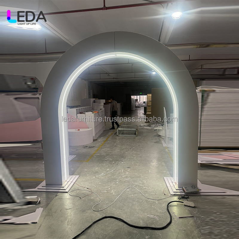 LEDA elegante arco blanco curvo blanco iluminado boda telón de fondo columna soporte para boda evento Fiesta